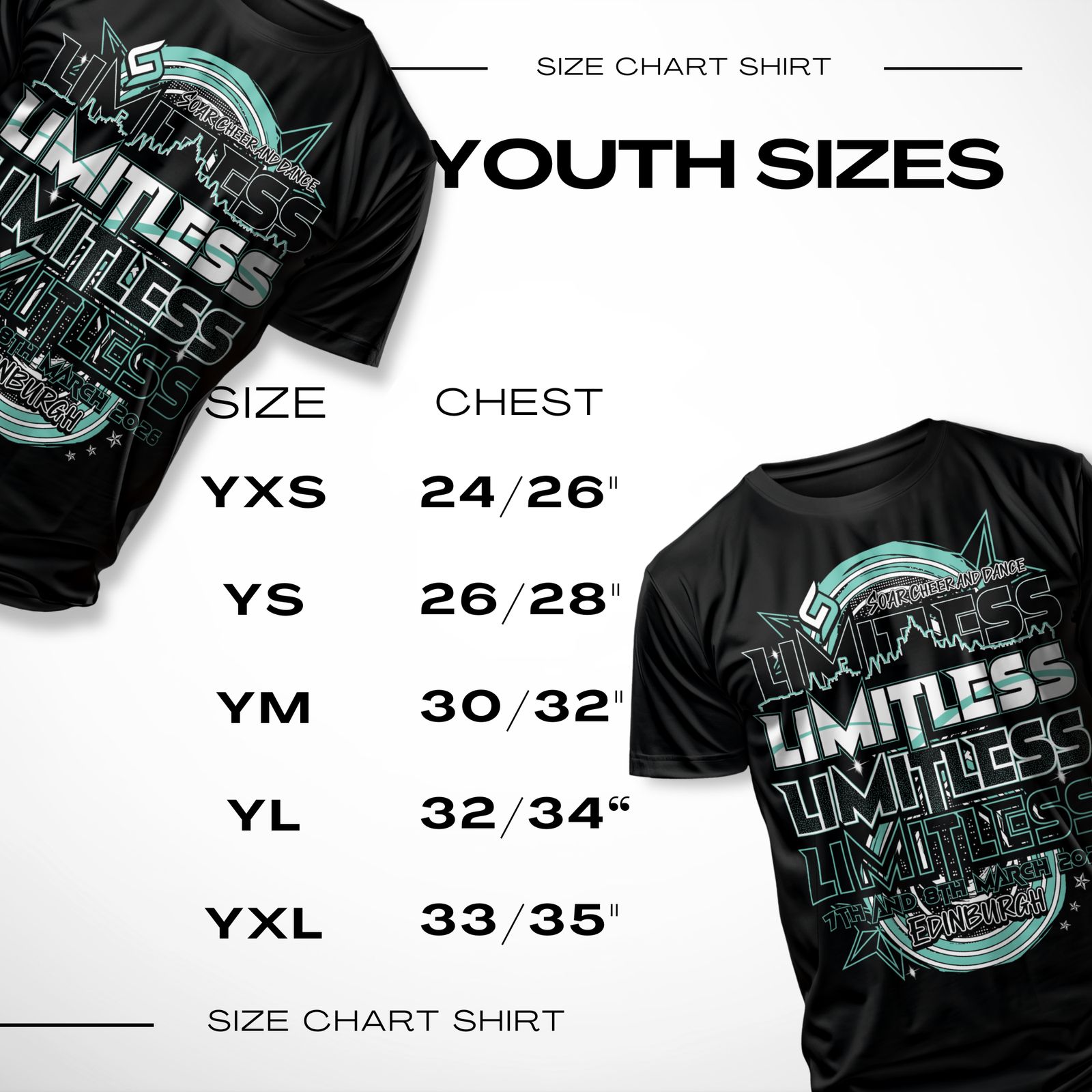 This Competition T-shirt is for Pre-Order and will be available for collection from the SOAR Cheer & Dance Shop at the Competition.